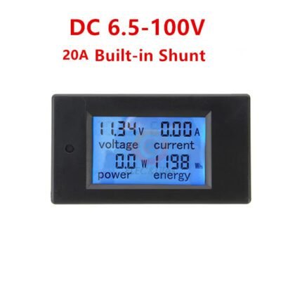Wattmètre DC 6.5–100V : Modèles 20A et 100A avec Shunt Externe – Voltmètre/Ampèremètre/Compteur de Puissance LCD