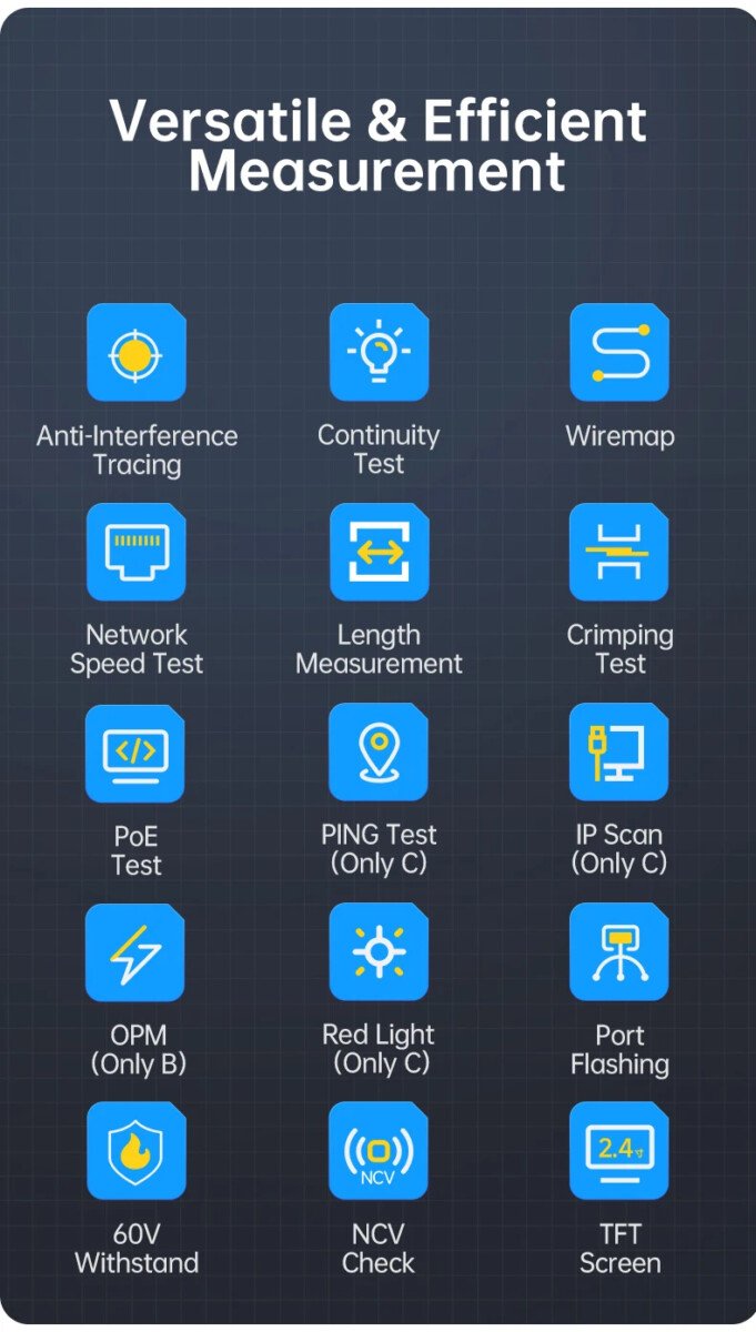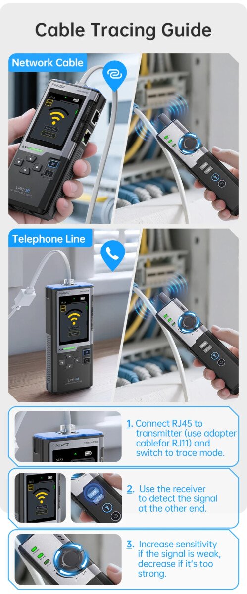Avec sa technologie anti-interférences, son mode Flash Port et sa compatibilité RJ45/RJ11, il devient l’outil indispensable pour tout technicien réseau, électricien ou installateur Internet.