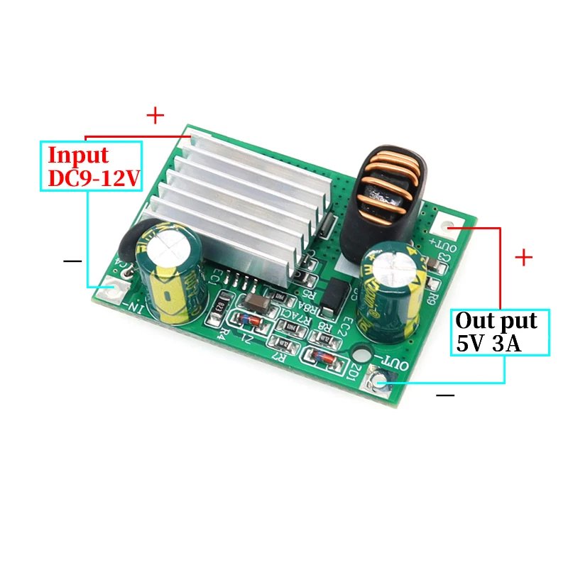 | DC9–120V ➜ 5V / 3A | 9 – 120 V DC | 5 V | 3 A (max) | ≈ 92 % | 60 × 45 × 25 mm |