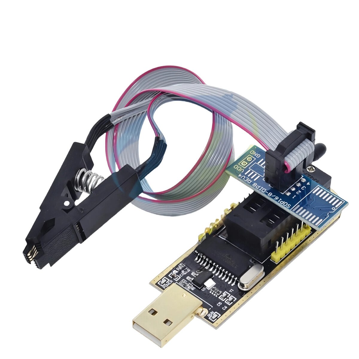 Adaptateur de Programmeur CH341A + Accessoires (SOIC8 / SOP8 / Clip / Câble / 1.8 V)