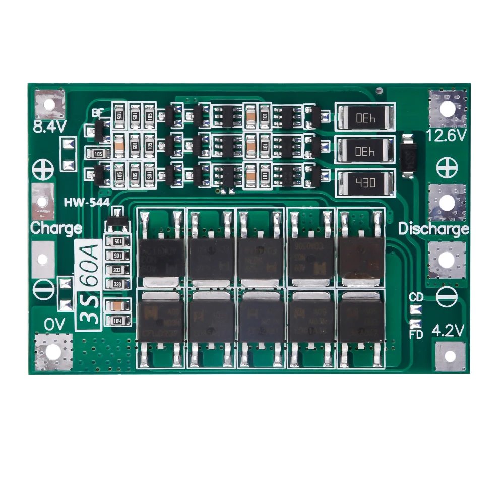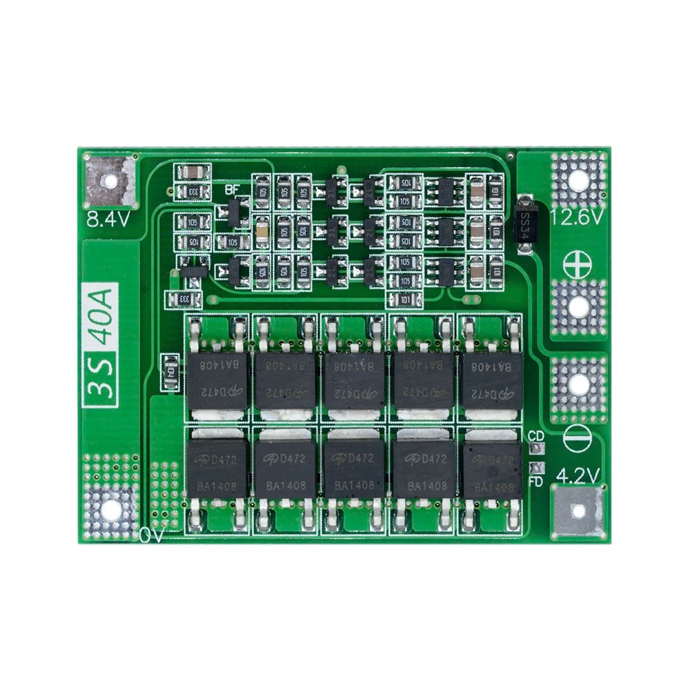 Cette carte BMS (Battery Management System) 3S est spécialement conçue pour les batteries Lithium-Ion 3S (3 cellules en série, 12.6V max). Elle offre une protection complète tout en gérant automatiquement l’équilibrage des cellules, avec des capacités de courant élevées (40A, 60A, 100A).