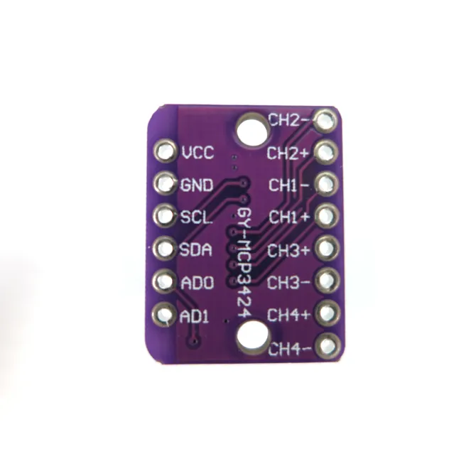 Le MCP3424 est un convertisseur analogique-numérique (ADC) de haute précision 18 bits, disposant de 4 canaux différentiel ou simple. Il communique via une interface I2C compatible avec Arduino, Raspberry Pi, ESP32, STM32, etc.