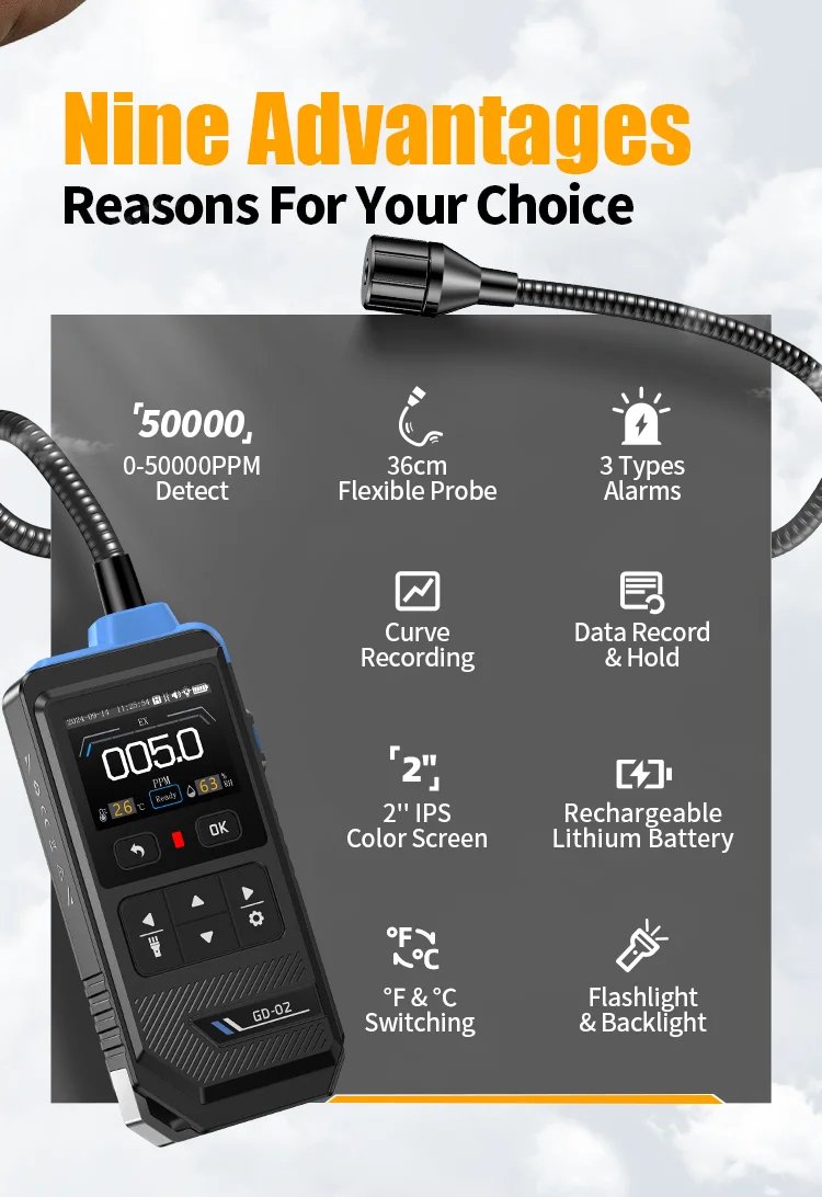 🔥 Détecteur de Fuite de Gaz Portable FNIRSI GD-02 – 50 000 PPM
