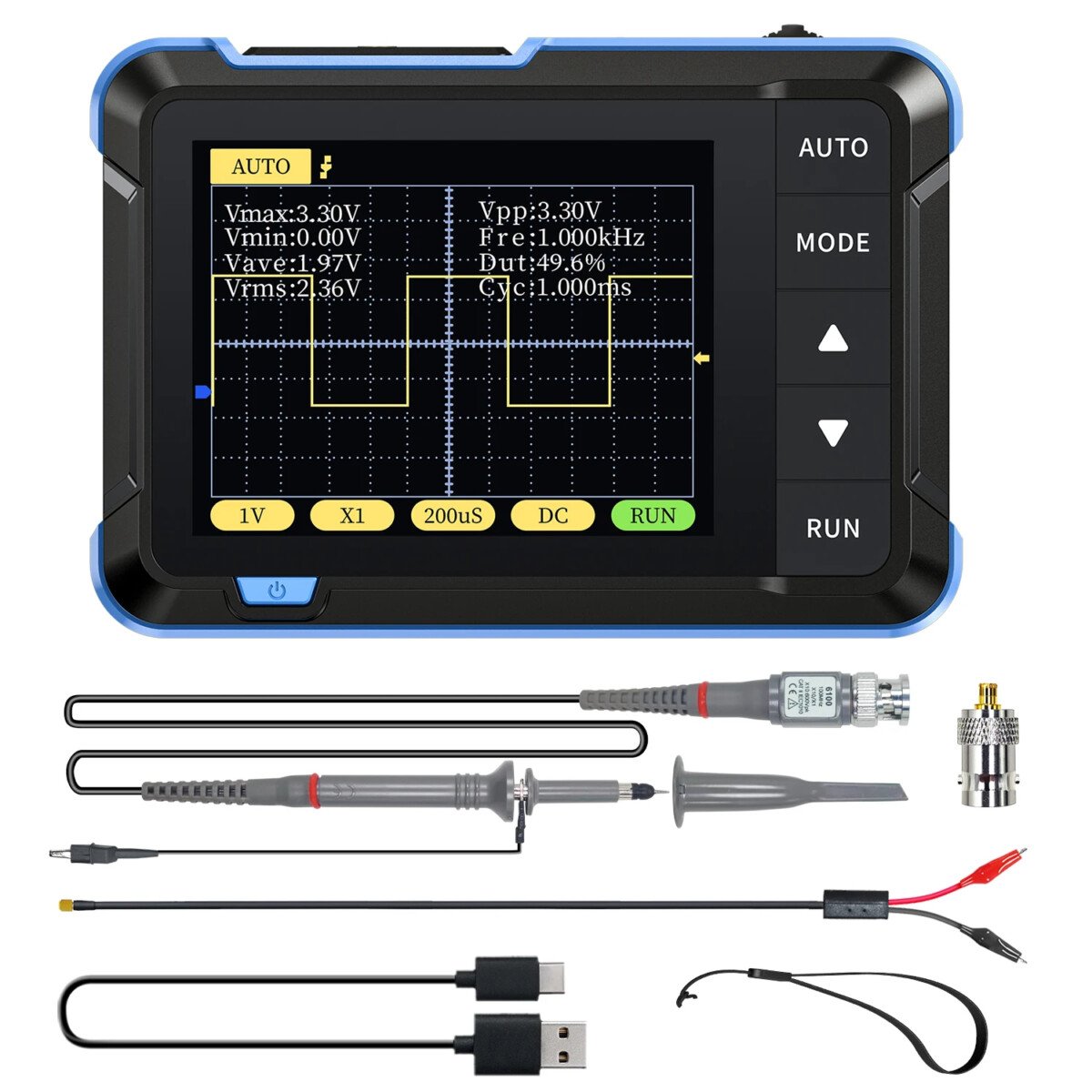 Le FNIRSI DSO153 est un oscilloscope numérique portable 2-en-1, combinant les fonctions d’un oscilloscope et d’un générateur de signaux. Il est particulièrement adapté aux amateurs d’électronique, aux techniciens en maintenance et aux étudiants.