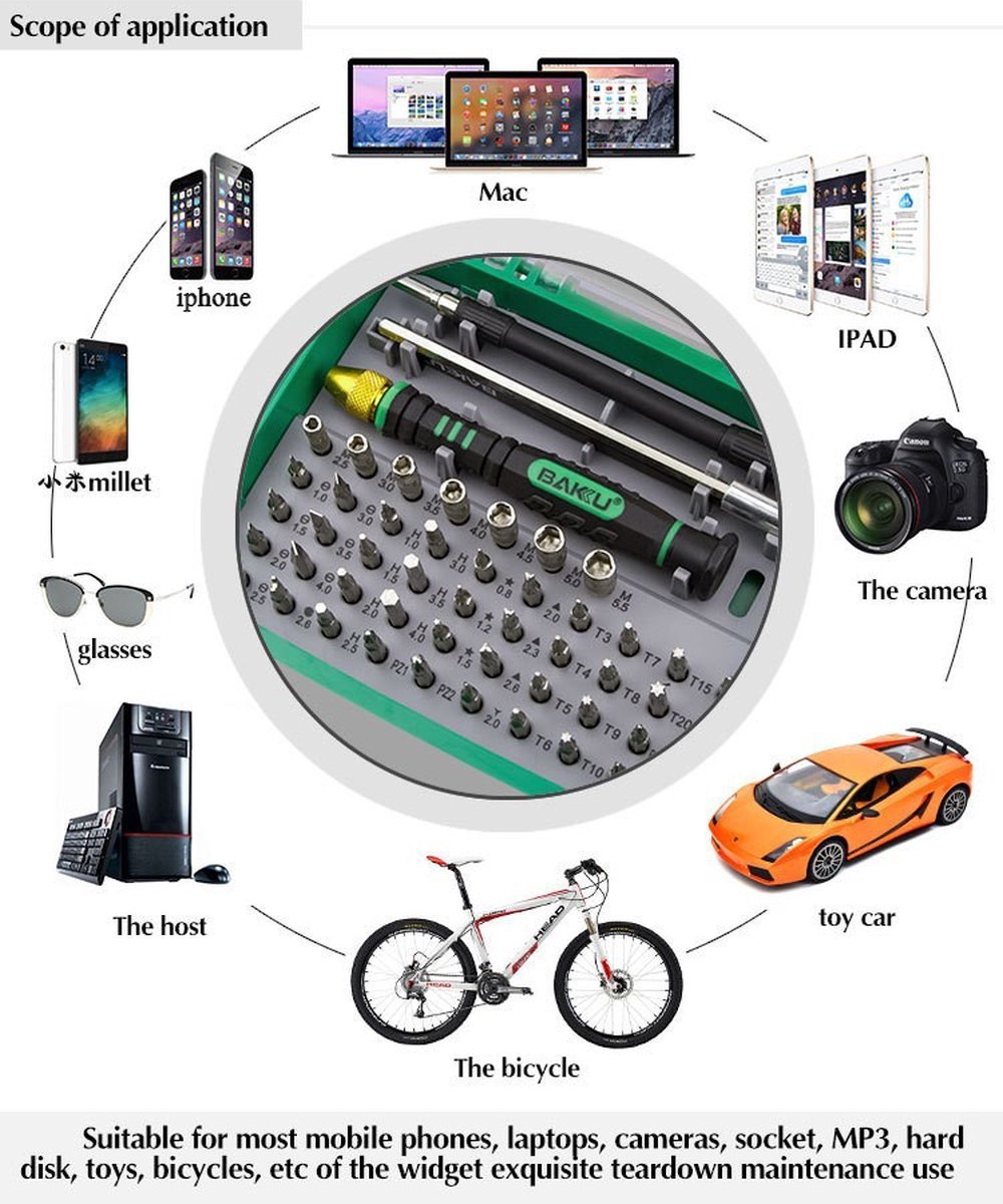 Le Baku BK-3051 est un ensemble de tournevis de précision composé de 51 pièces, conçu pour diverses réparations électroniques, notamment celles de téléphones mobiles.