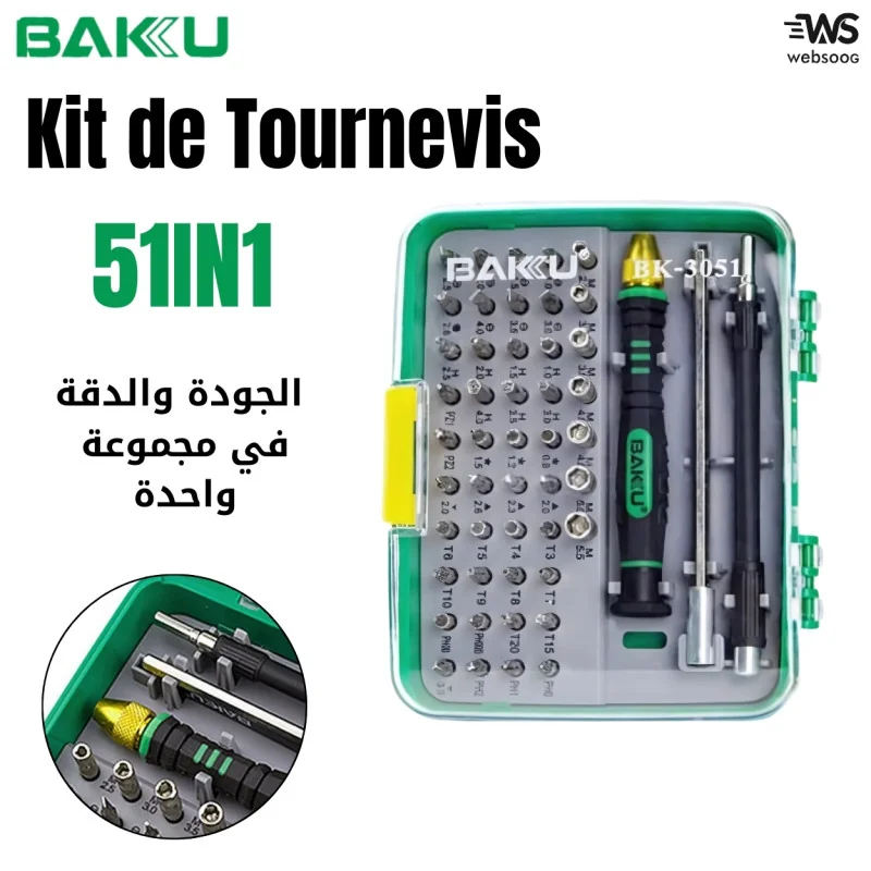 Kit de Tournevis BAKU BK-3051 – Outil de Précision pour Réparation, Multi-Têtes Interchangeables