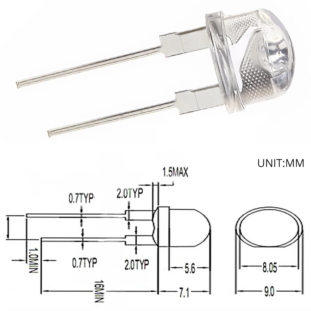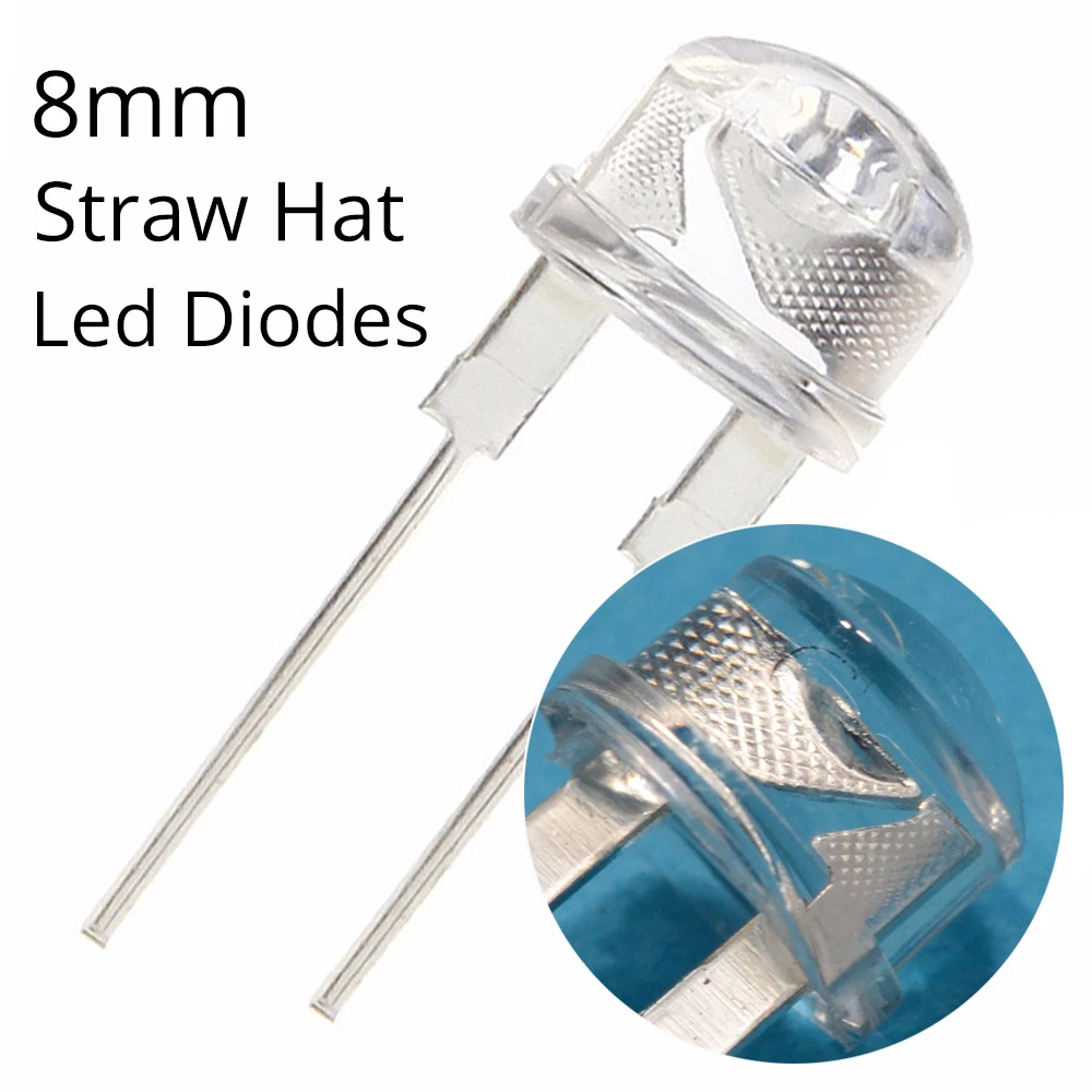 Lampe LED Super Brillante Transparent Chapeau de Paille, F8, 8mm, 0.5W