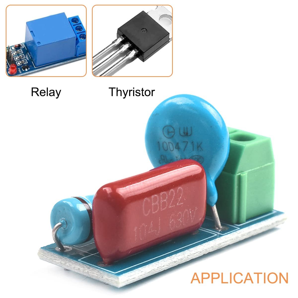 Le module RC snubber est conçu pour protéger les relais, triacs, interrupteurs et circuits électroniques contre les surtensions, parasites et interférences électromagnétiques générées lors des commutations de charges inductives (moteurs, relais, transformateurs, etc.).