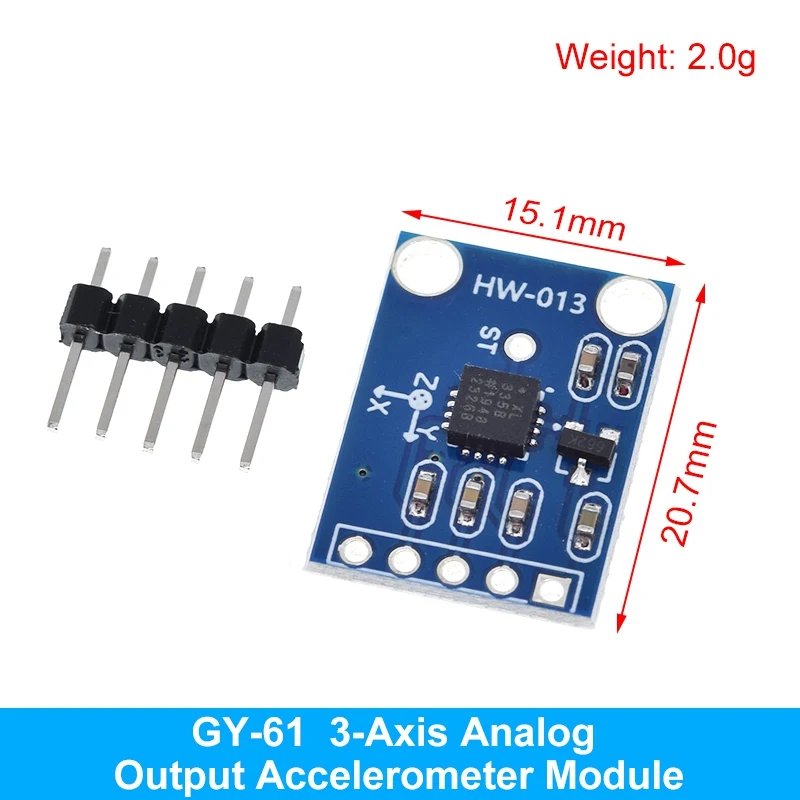 | 4 | GY-61 | ADXL335 | Accéléromètre analogique | Analogique | 3–5V | — | 3 axes | Sortie analogique directe, très stable |