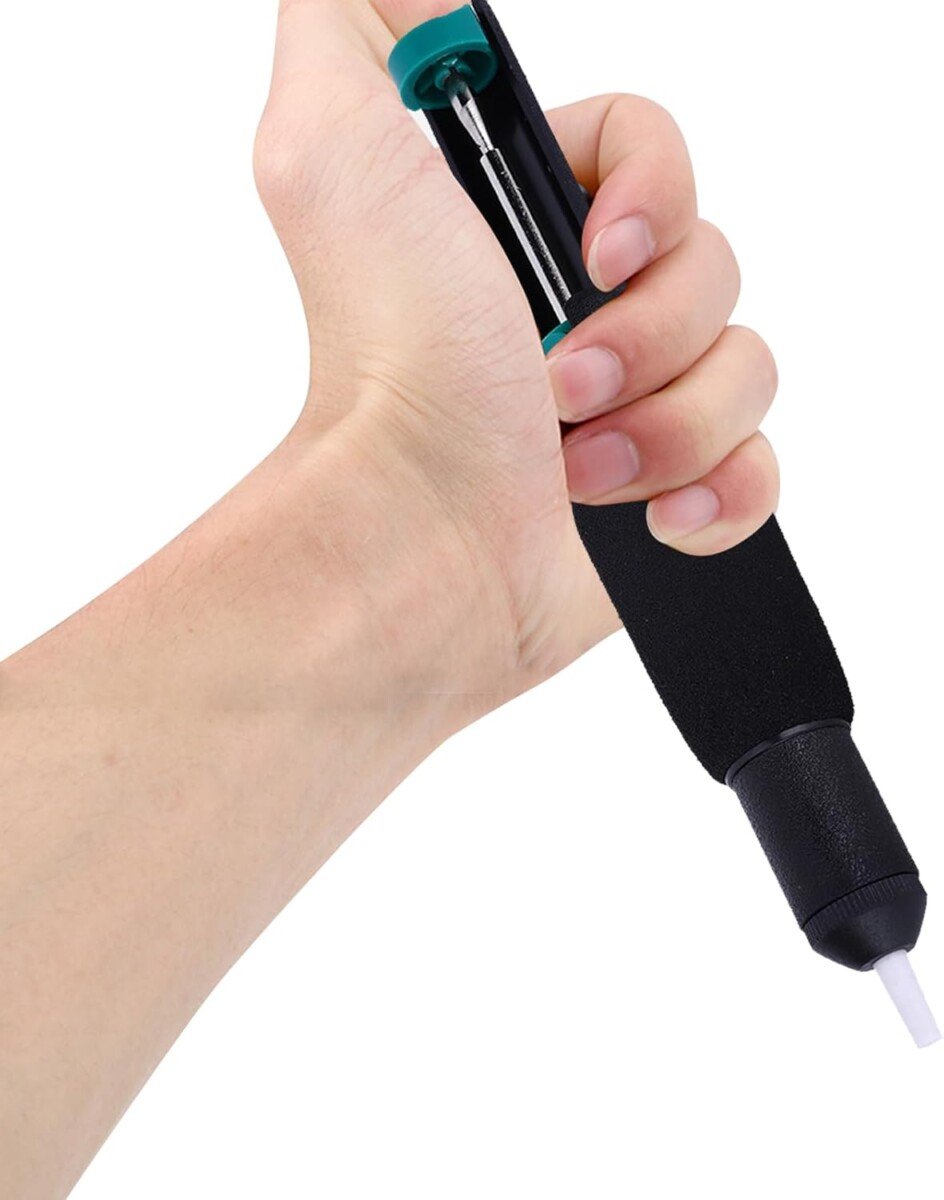 La pompe à dessouder est un outil essentiel pour les travaux d’électronique, permettant de retirer l’étain des soudures sur les circuits imprimés. Conçue pour être utilisée en conjonction avec un fer à souder, elle fonctionne par aspiration pour éliminer proprement l’étain fondu des connexions. Cet outil se compose généralement d’un cylindre, d’un piston, d’un embout en téflon résistant à la chaleur, et d’un mécanisme de déclenchement rapide.