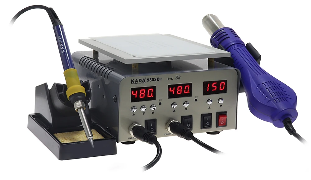 Station de soudure 3-en-1 KADA 9803D+ Air chaud + Fer à souder + Plaque chauffante intégrée