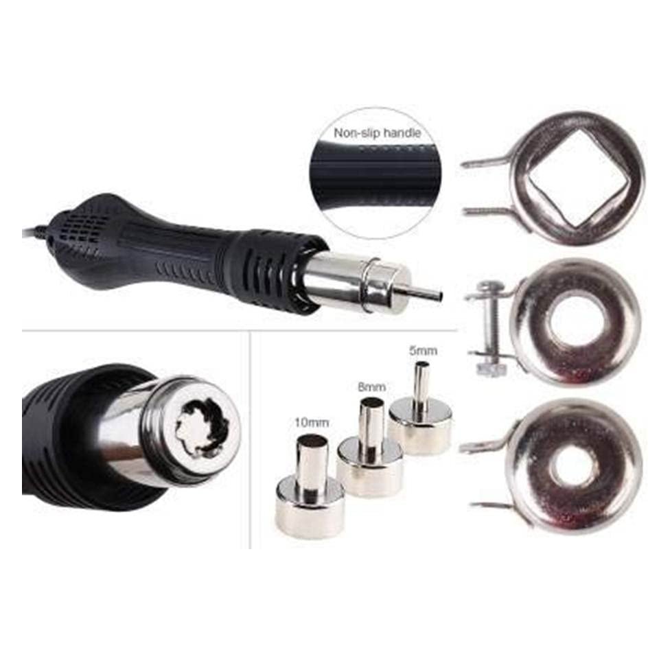 | 📦 Contenu | 📦 Station principale, fer à souder, pistolet à air chaud, support, buses, cordon d’alim. |