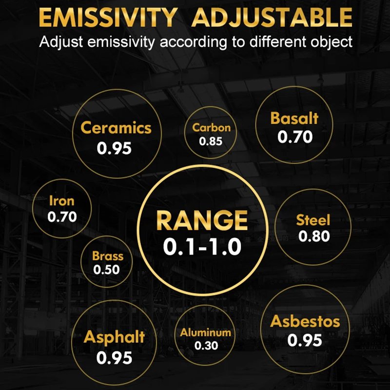 Emissivité réglable — pour améliorer la précision selon le matériau mesuré.